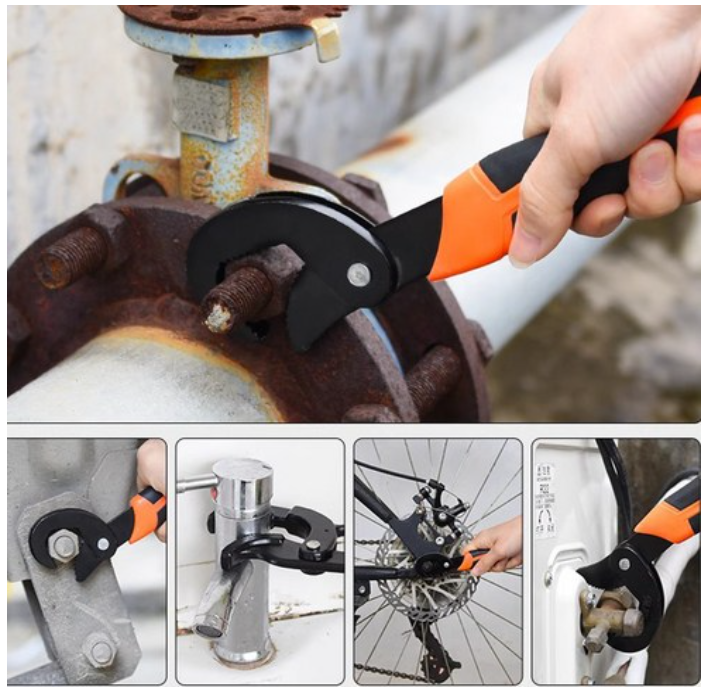 이 렌치의 가장 큰 특징은 '스스로 알아서' 크기를 조절하고 물체를 꽉 잡아준다는 점입니다. 일반 몽키스패너처럼 일일이 나사에 맞춰 크기를 조절할 필요가 없습니다.