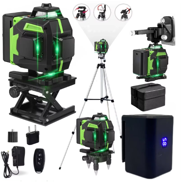 4D 1612 8 Lines Green Light Vertical and Horizontal Site Measuring Laser Instrument Inclined Laser Level Construction Tools